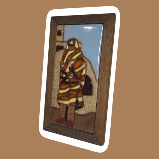 1970s Hand-Painted, Wood Framed, Tile Wall Art, Santa Fe Pueblo Southwestern Pattern