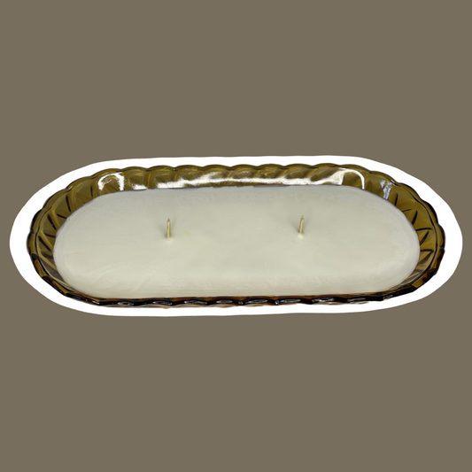 Vintage Amber Glass Candy Dish Double Hemp Wick & Soy Wax Candle