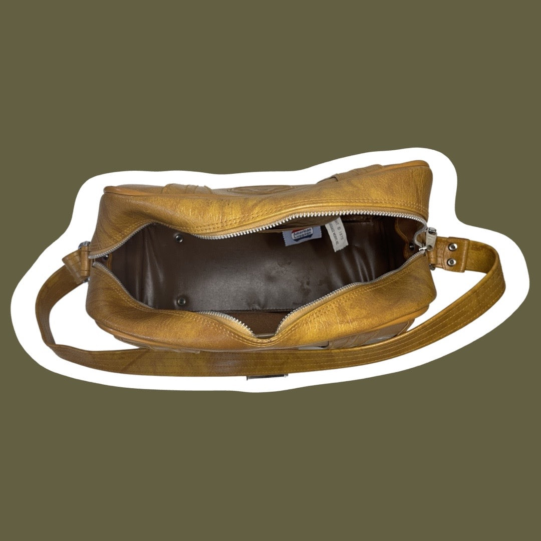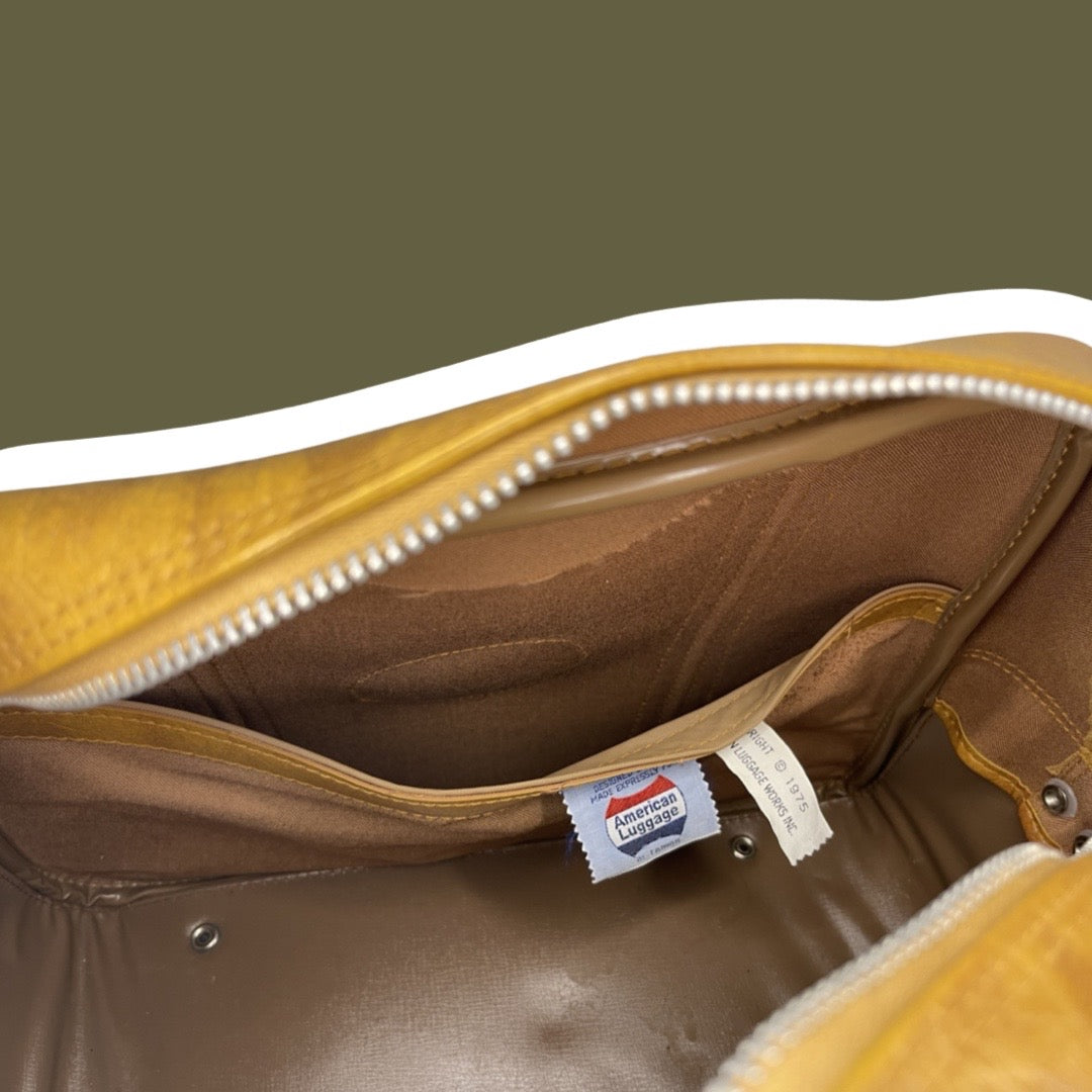 Este bolso de viaje de cuero vegano de la marca "American Luggage" es de los años 70 y es muy versátil. Perfecto como equipaje de mano o para un viaje corto.