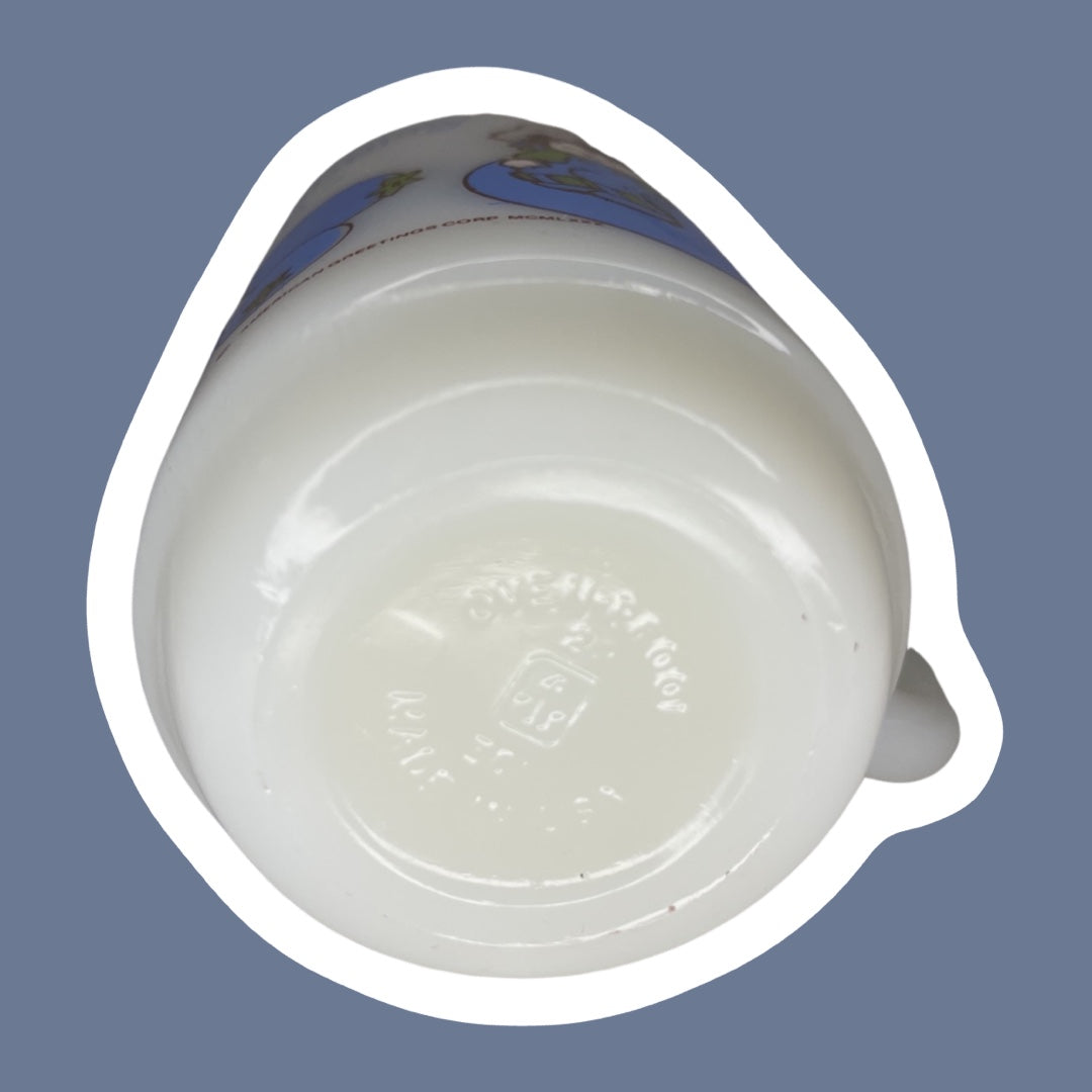 Taza de vidrio con leche y vela de la tarta de arándanos de Anchor Hocking de los años 80, tarta de fresas