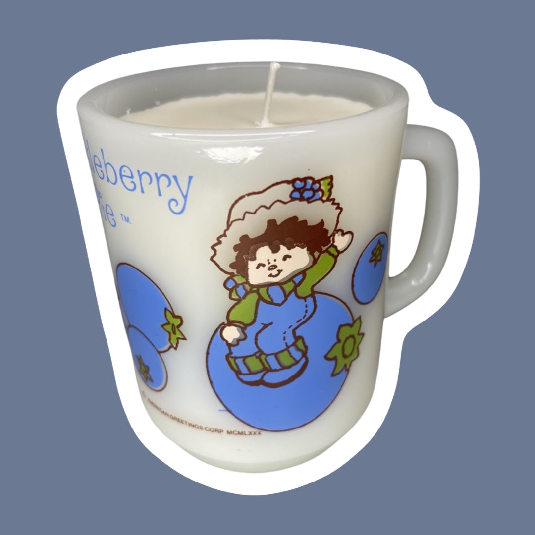 Adorable vela en vaso de vidrio con leche "Huckleberry Pie" de Anchor Hocking de los años 80. Esta vela está hecha de cera de soja junto con aceites esenciales de vainilla, naranja dulce y limón para crear un aroma cítrico ligero y cremoso que seguramente agradará a cualquiera. Como está hecha de cera de soja, arde de forma más limpia que las velas de cera de parafina tradicionales.