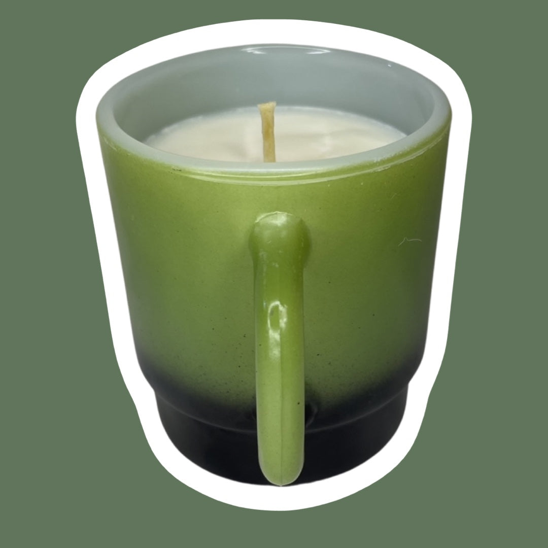 ¡Taza verde oliva con efecto ombré convertida en vela! Esta vela está hecha de cera de soja junto con aceites esenciales de vainilla, naranja dulce y limón para crear un aroma cítrico ligero y cremoso que seguro agradará a cualquiera. La mecha está hecha de cáñamo y cera de abejas y arde de forma más limpia que las velas de cera de parafina tradicionales.