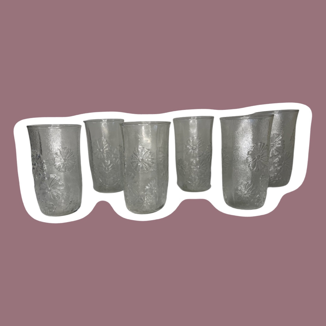 Juego de jarra y seis vasos de cristal transparente con diseño floral 'Spring Song' de Anchor Hocking
