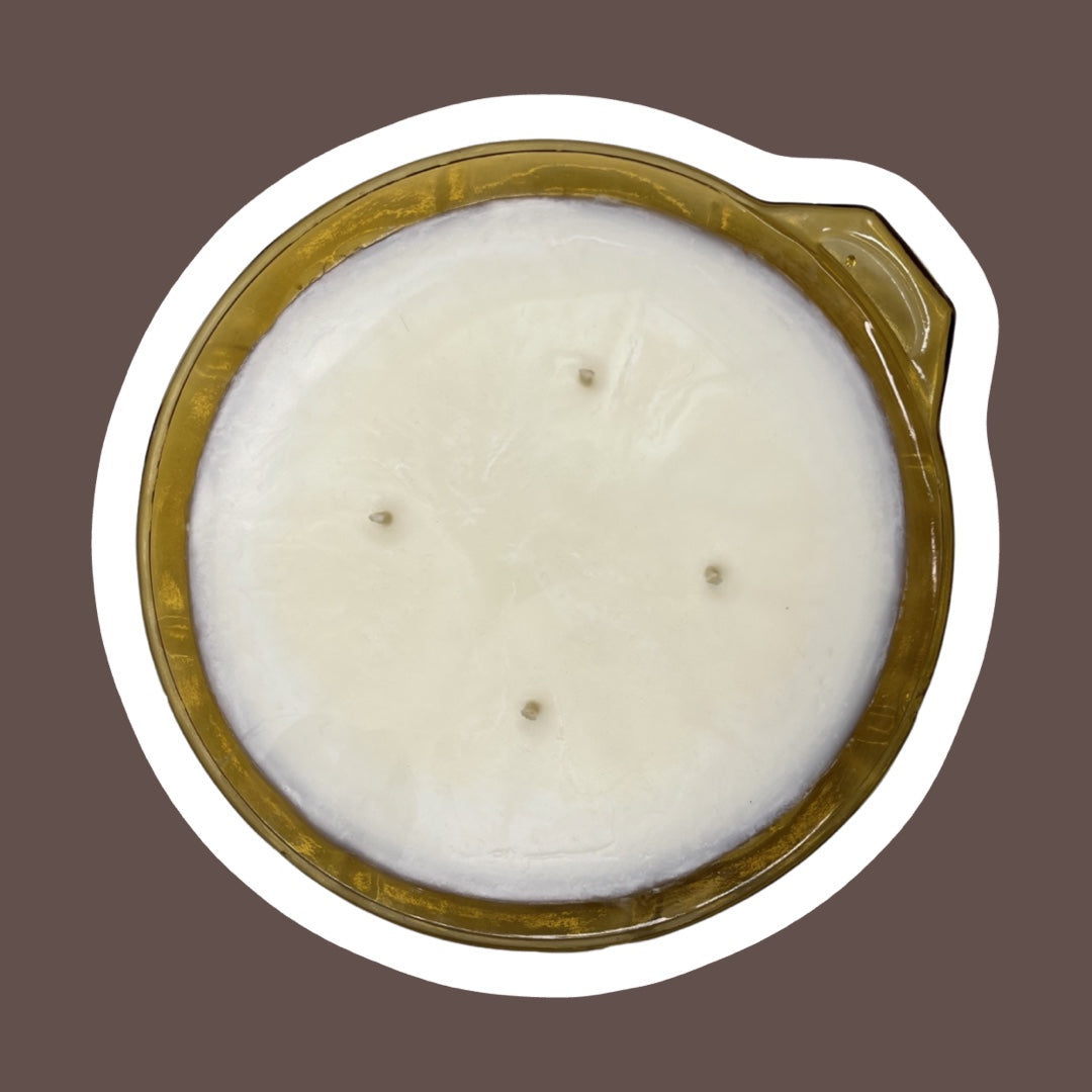 Hermoso y ornamentado plato para dulces con base convertido en vela. Esta vela está hecha de cera de soja junto con aceites esenciales de vainilla, naranja dulce y limón para crear un aroma cítrico ligero y cremoso que seguramente agradará a todos. La mecha está hecha de cáñamo y cera de abejas y arde de forma más limpia que las velas de cera de parafina tradicionales.