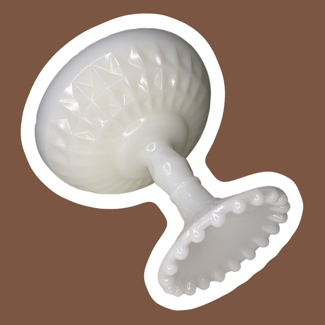 Este hermoso y raro plato con pedestal de vidrio lechoso de los años 50 de 'Jeanette Glass Co.' es de estilo 'Windsor' y es un candelabro impresionante. Esta vela está hecha de cera de soja junto con aceites esenciales de vainilla, naranja dulce y limón para crear un aroma cítrico ligero y cremoso que seguro agradará a cualquiera. La mecha está hecha de cáñamo y cera de abejas y arde de forma más limpia que las velas de cera de parafina tradicionales.