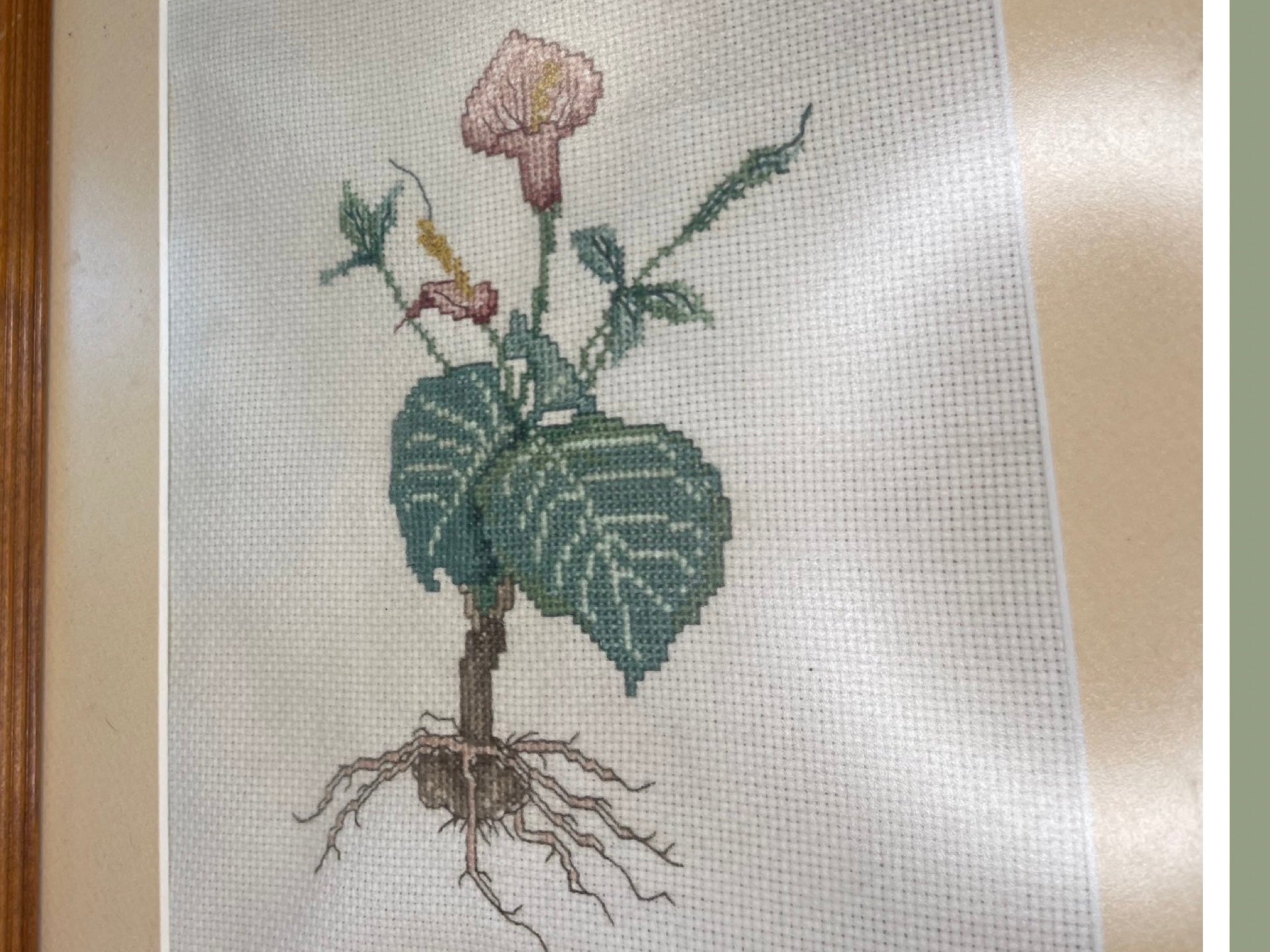 Punto de cruz o aguja enmarcado con flores hecho a mano, 14" x 17"
