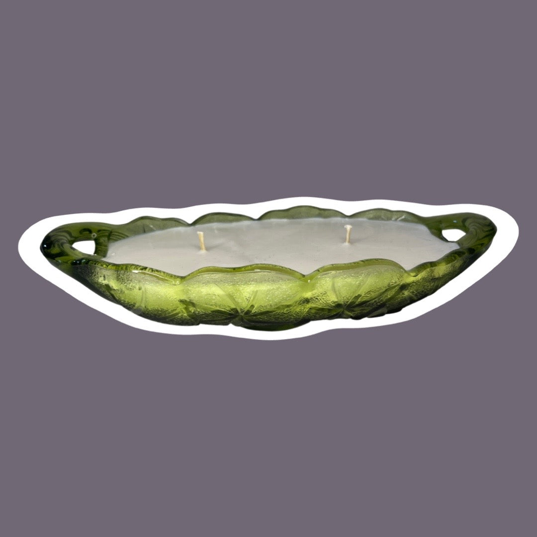 Bandeja para dulces o adornos de vidrio Indiana verde esmeralda Vela de cera de soja ligeramente perfumada