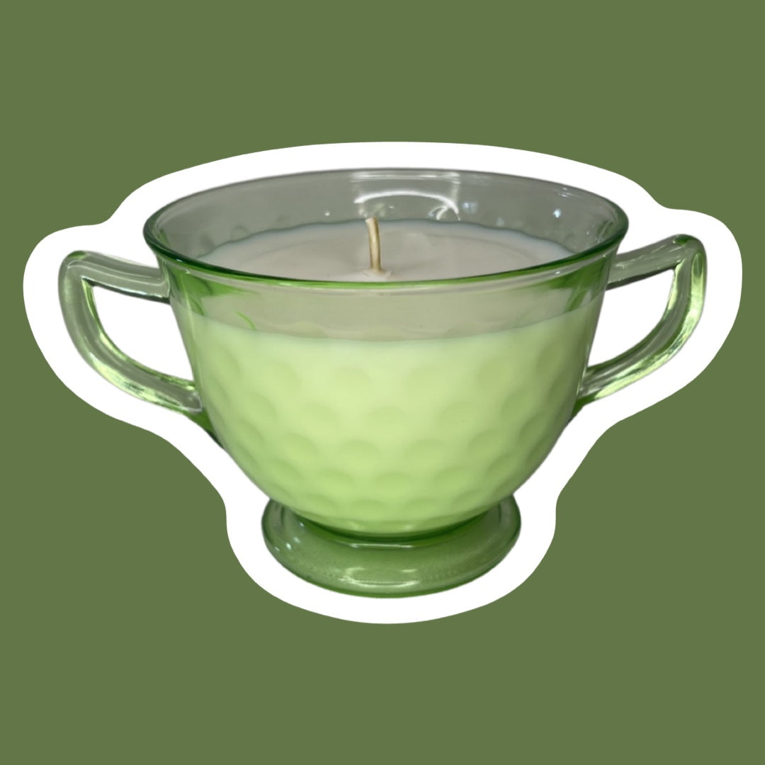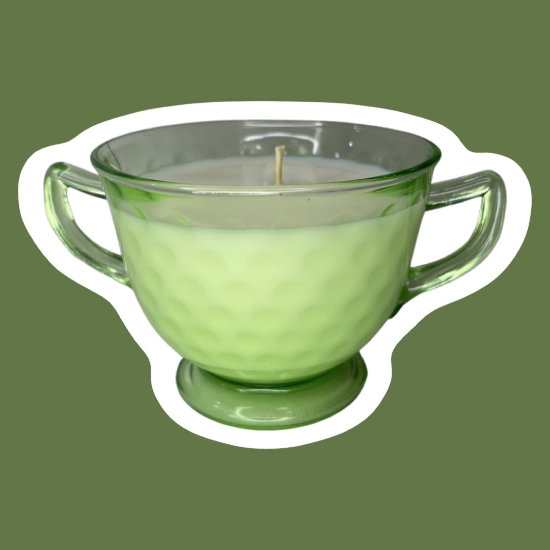 Vela de cera de soja con azucarero de vidrio de uranio verde federal