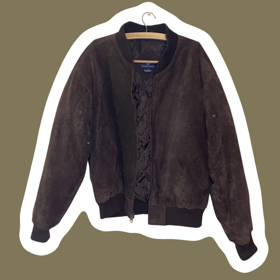 Cazadora bomber de piel auténtica de ante marrón Andhurst, talla mediana para hombre