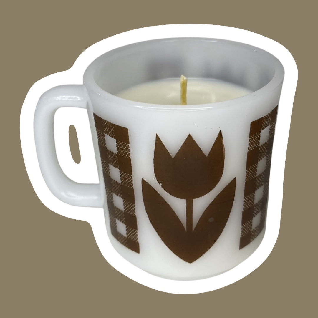 Vela en taza de cera de soja con forma de tulipán marrón de vidrio con leche de Glasbake