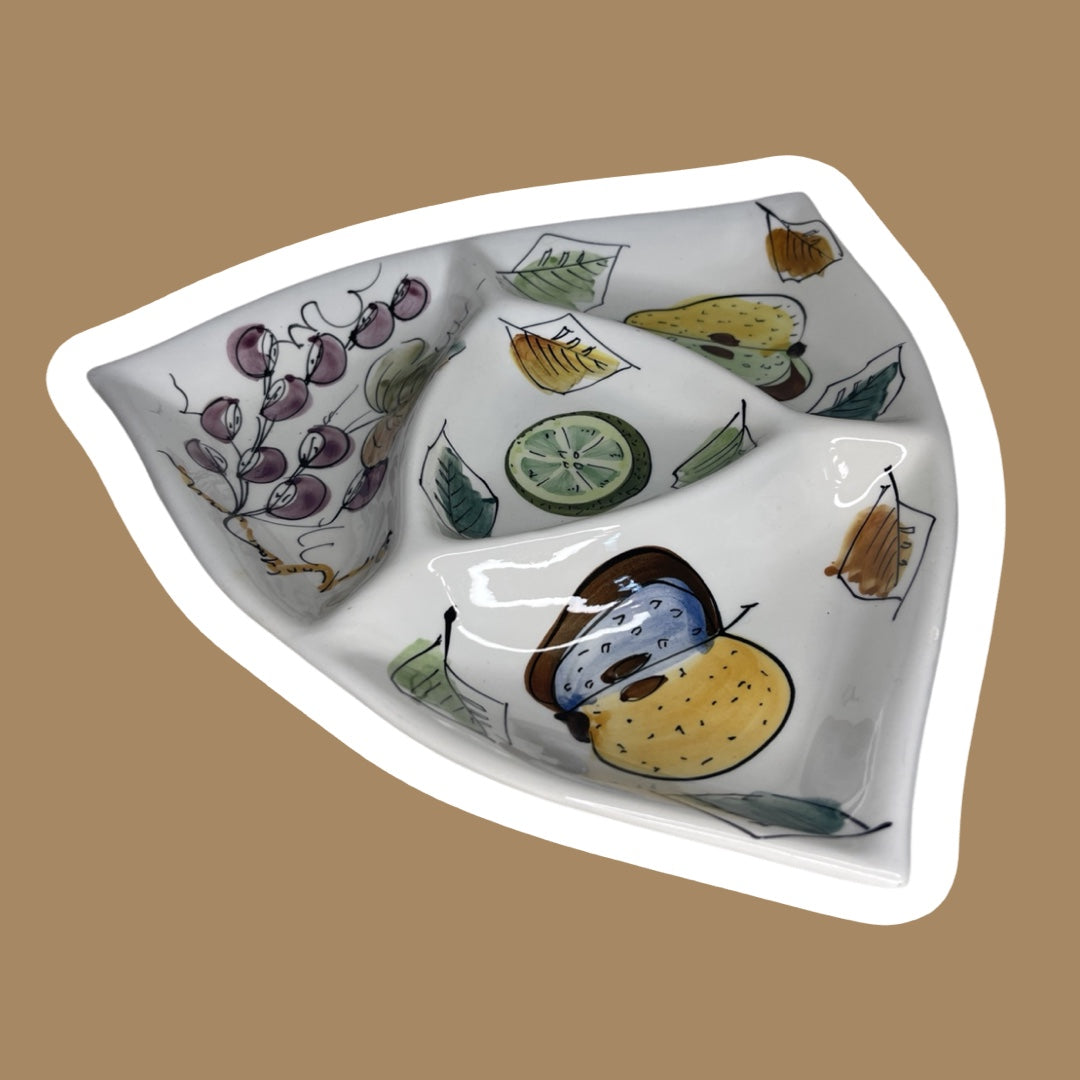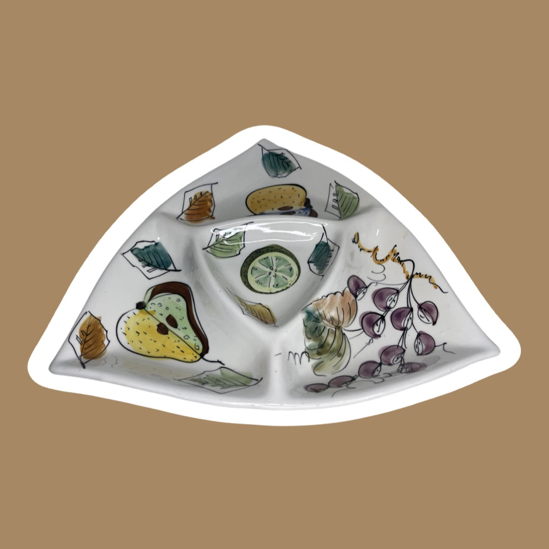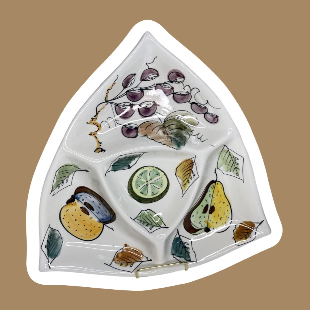 Bandeja de aperitivos de cerámica con frutas pintada a mano de los años 50 y 60