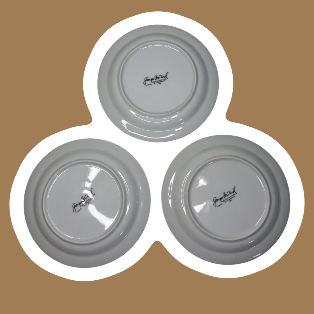 Este es un juego de tres platos de aperitivo súper lindos, de estilo moderno, de mediados de siglo, de 'Georges Briard'.