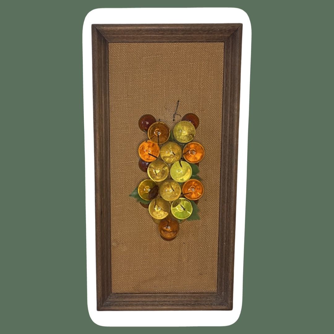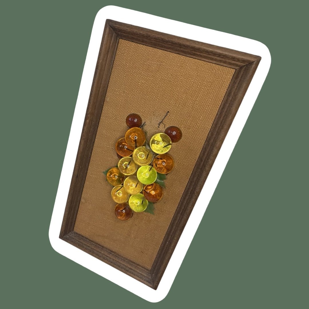 Arte de pared con marco de madera y racimos de uvas de metacrilato de mediados de siglo