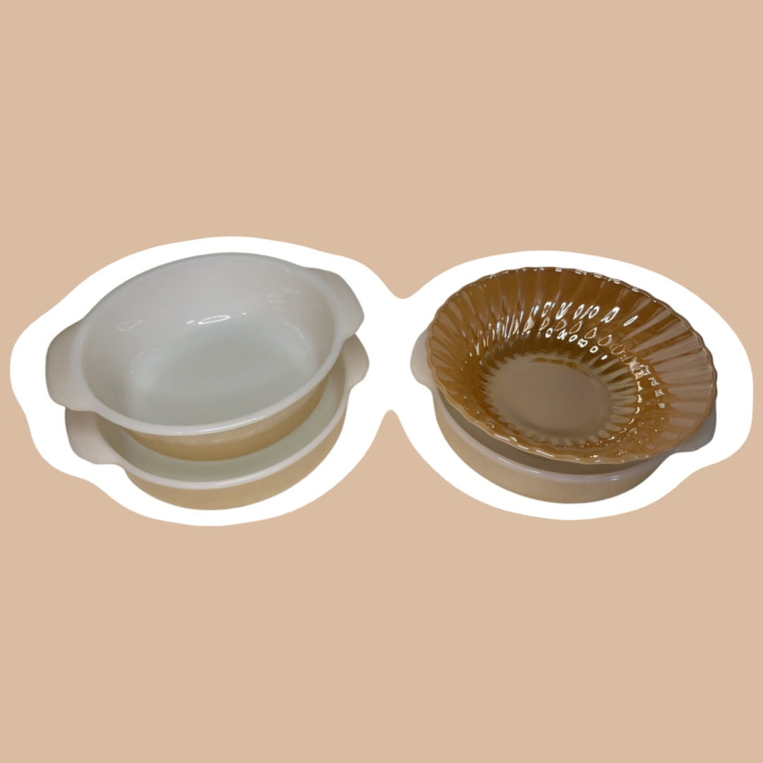 Juego de 4 cuencos y fuentes para horno o cazuela de vidrio con brillo de melocotón "Fire King"