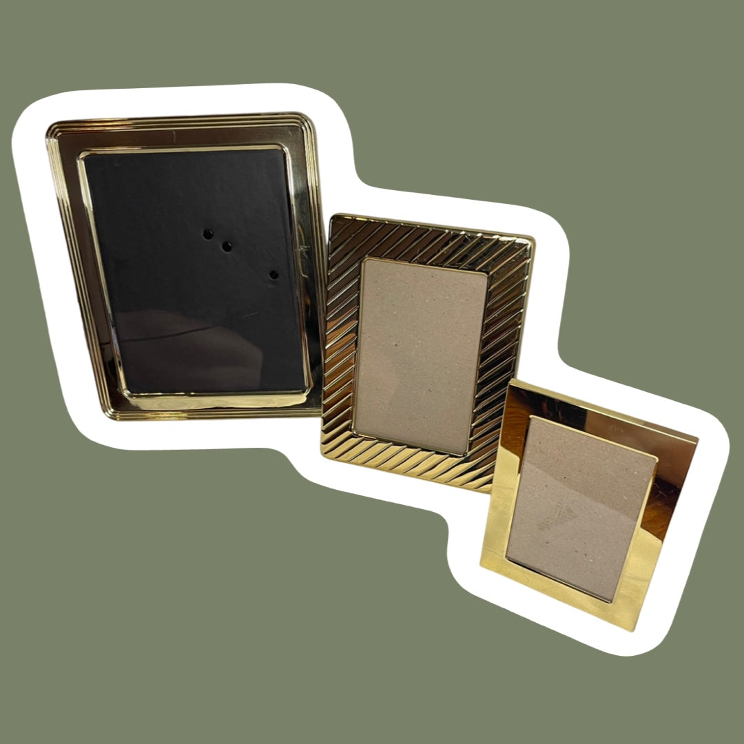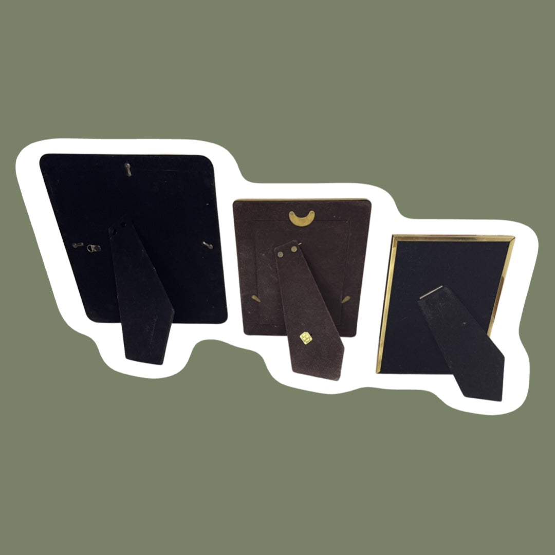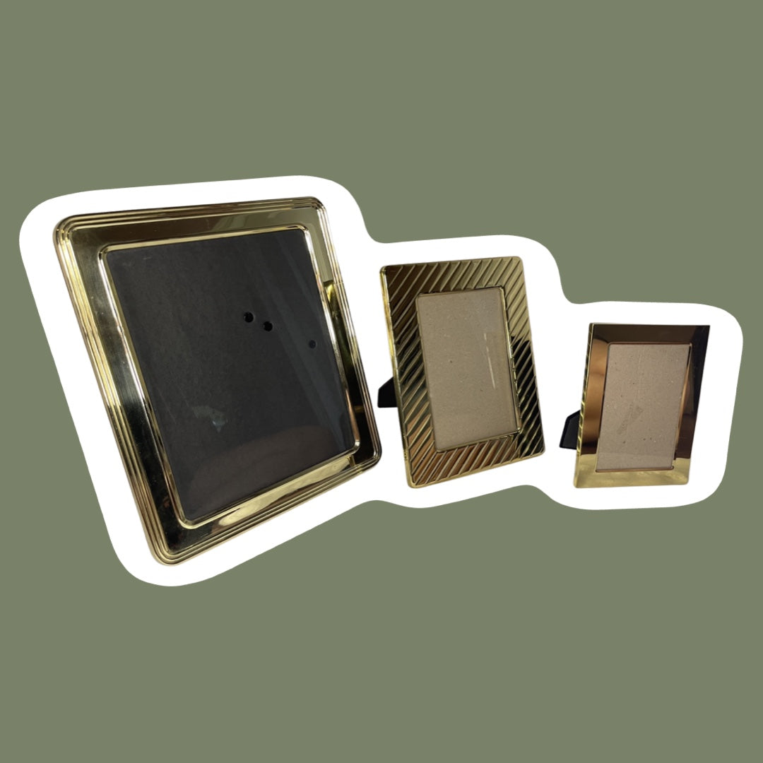 Este hermoso juego de tres marcos de fotos de latón pulido tiene el estilo conocido como "Hollywood Regency". ¡Piezas de gran calidad!