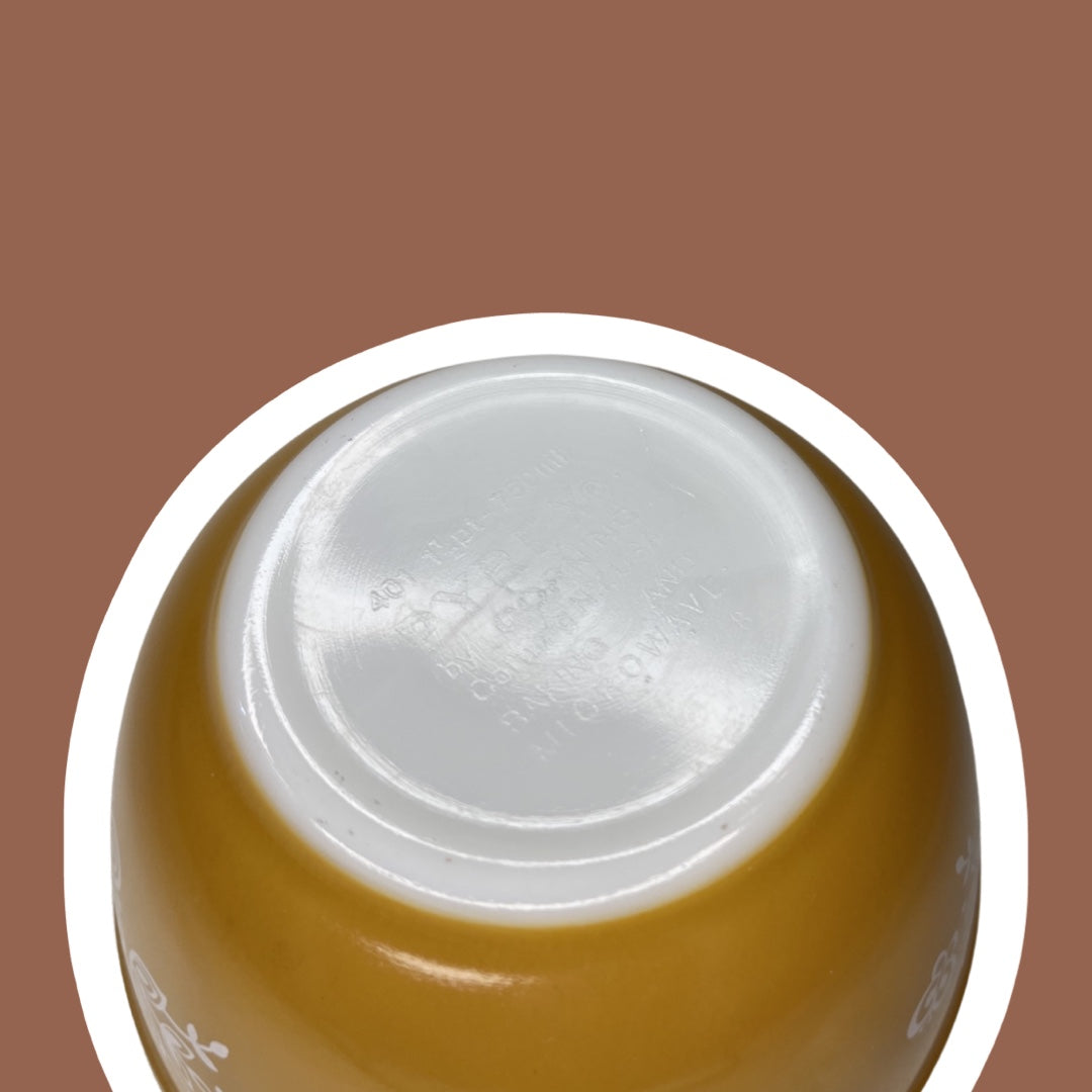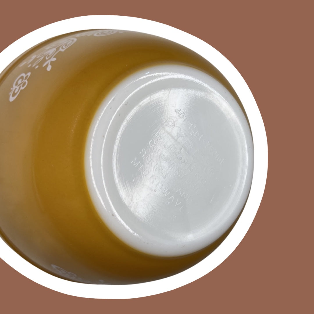 Tazón para mezclar de vidrio con leche de 1,5 puntos con diseño de mariposa dorada de Pyrex n.° 401