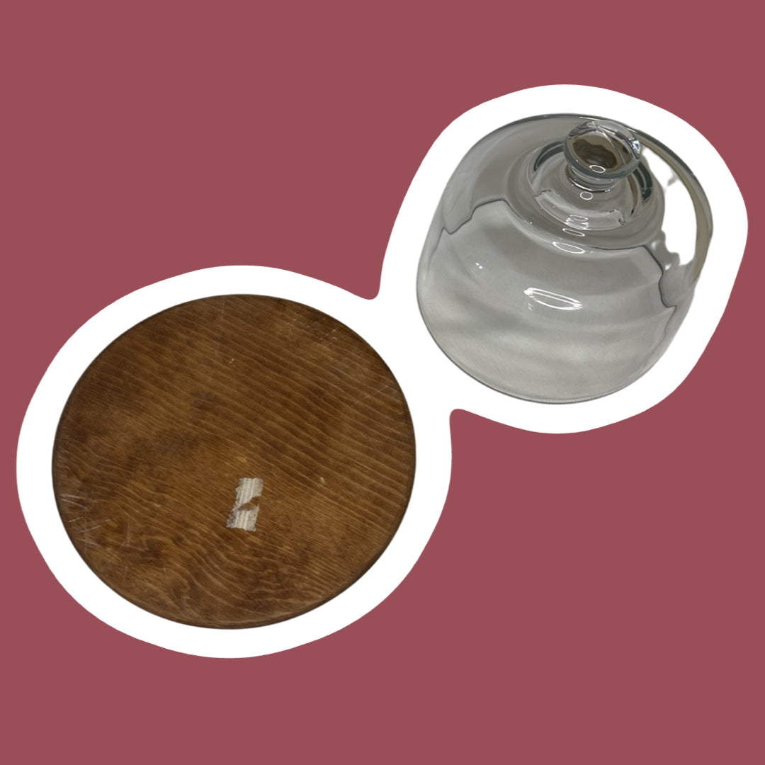 Plato rústico de teca y cerámica para queso y fresas con cúpula de cristal