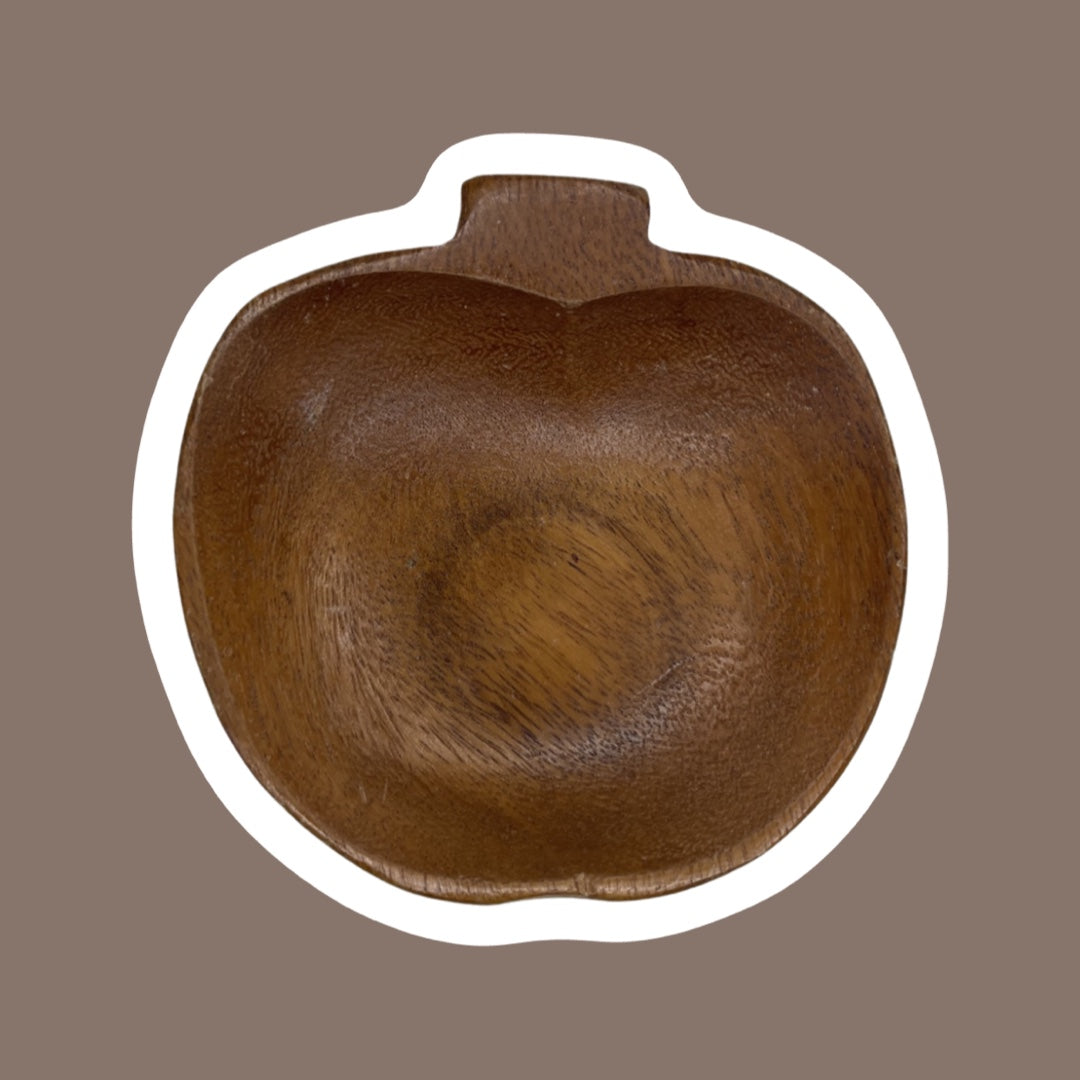 Apple Shaped Monkey Pod Wood Trinket Dish, Mid-Century