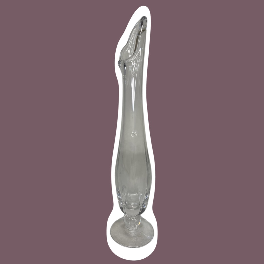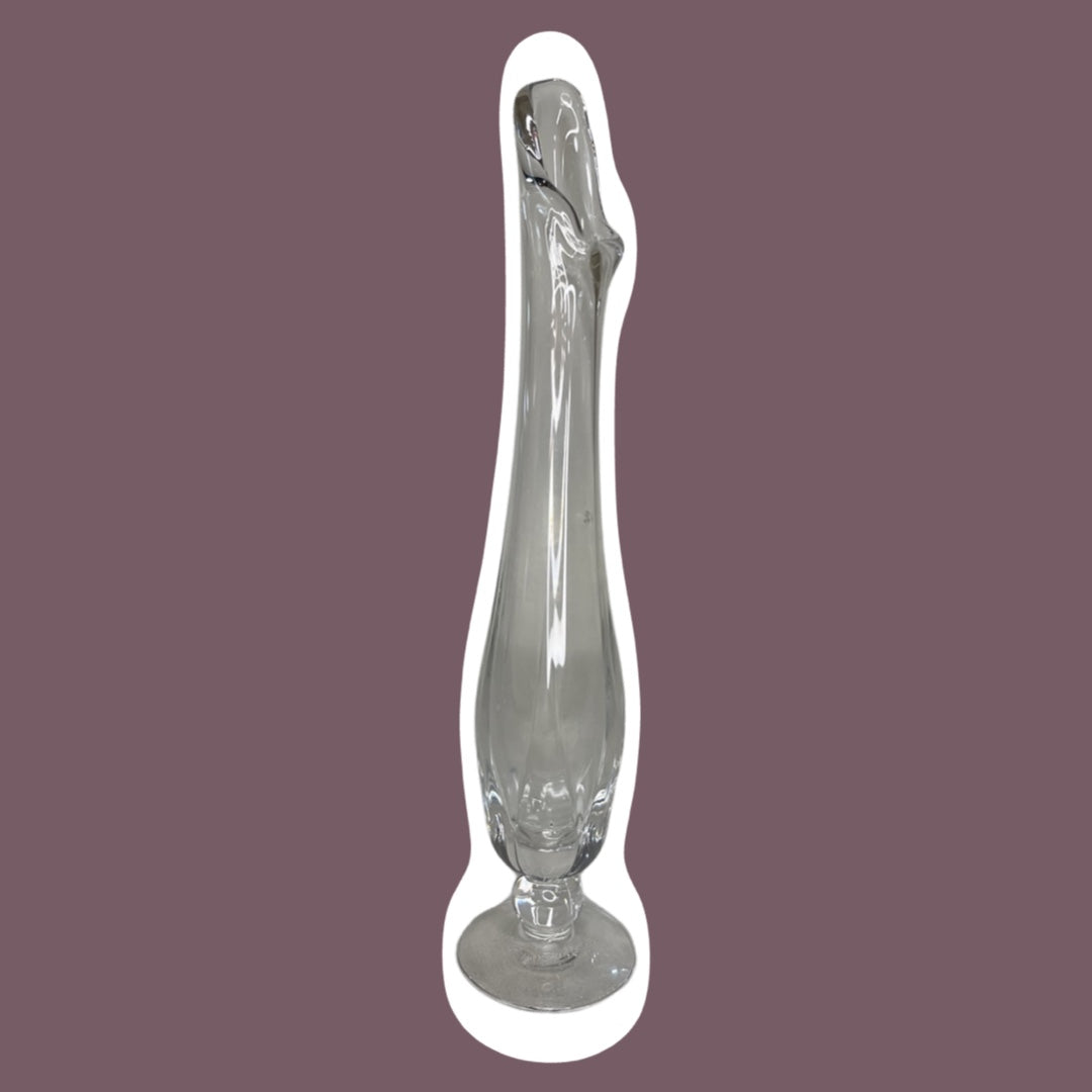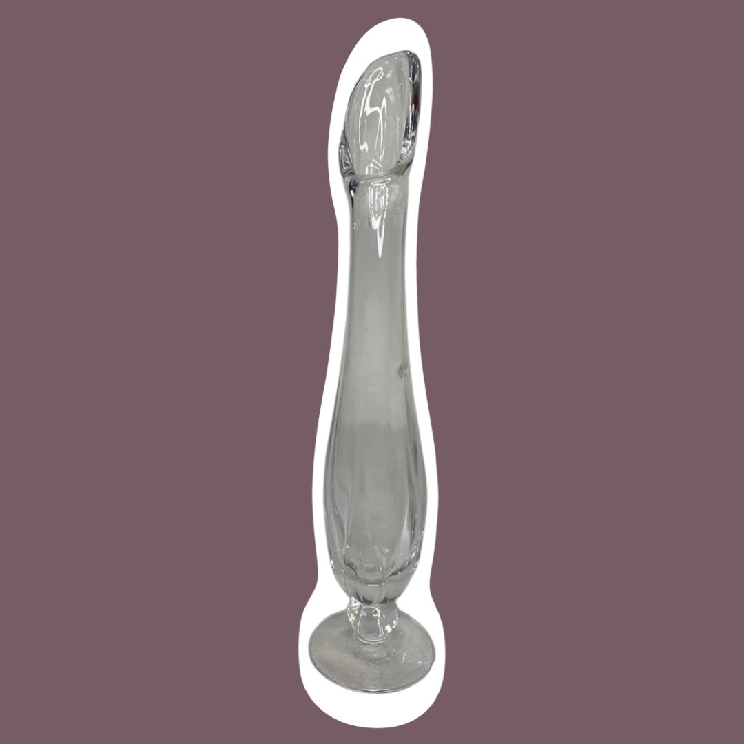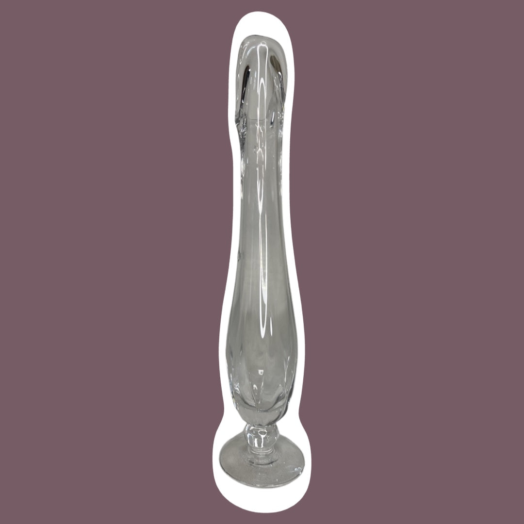 Classic, clear, mid-century style swung glass bud vase. This would match almost any aesthetic!