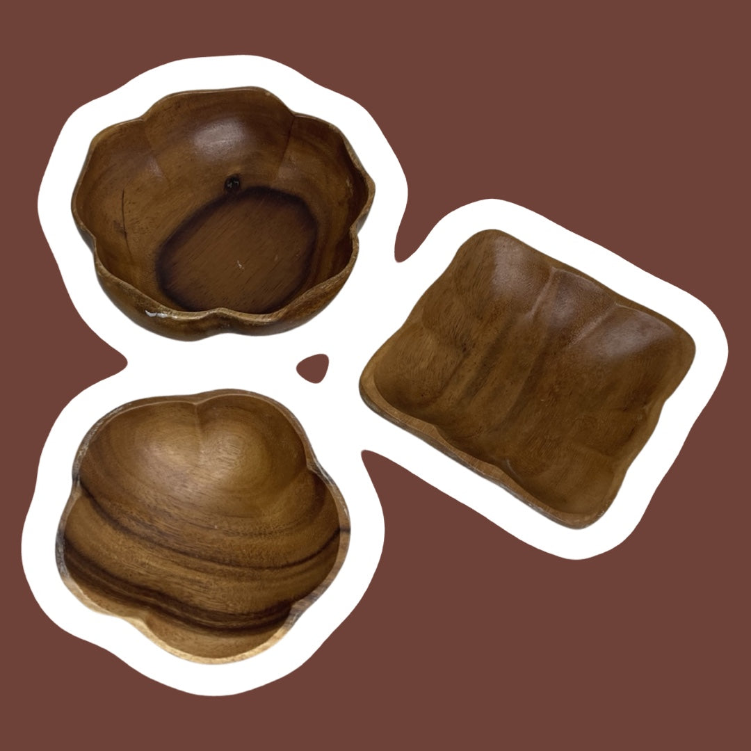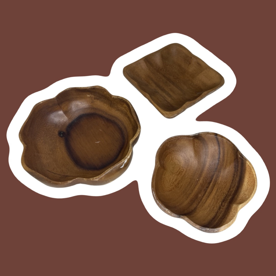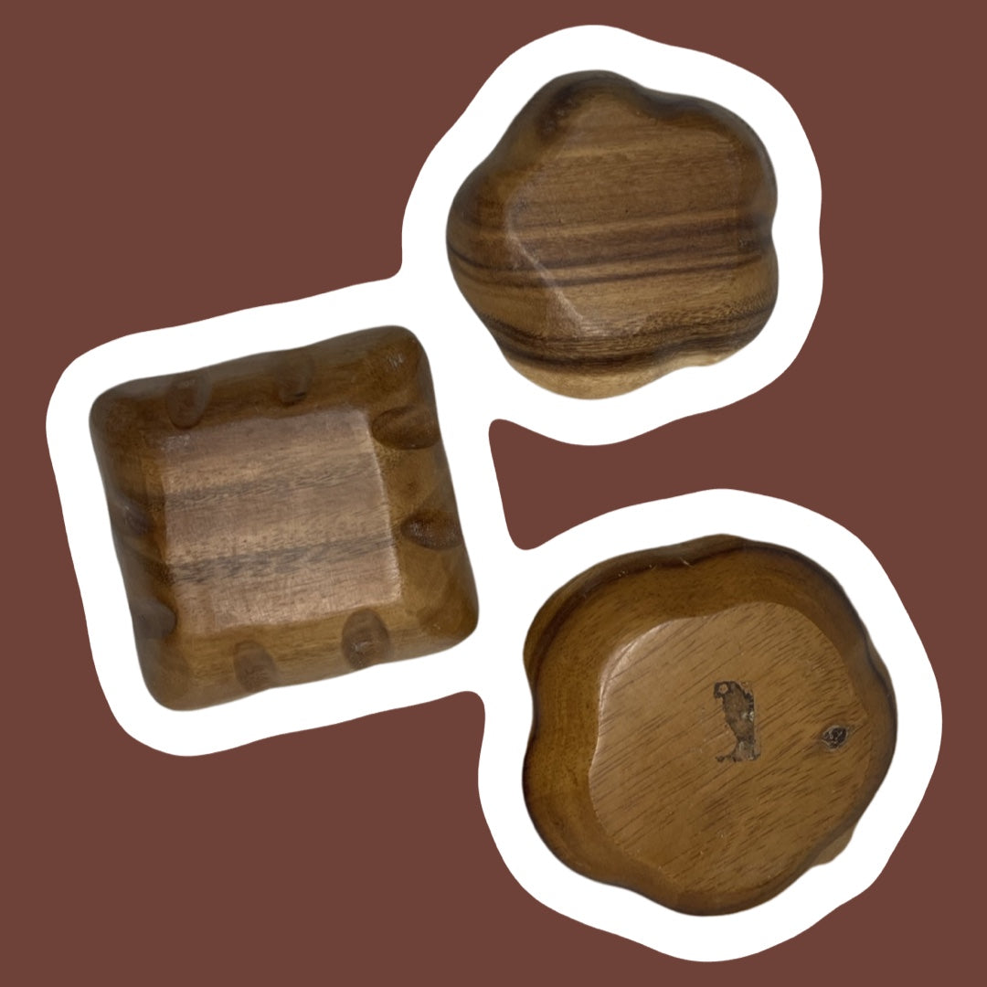 Flower & Square Shaped Monkey Pod Wood Trinket Dishes, Set of 3