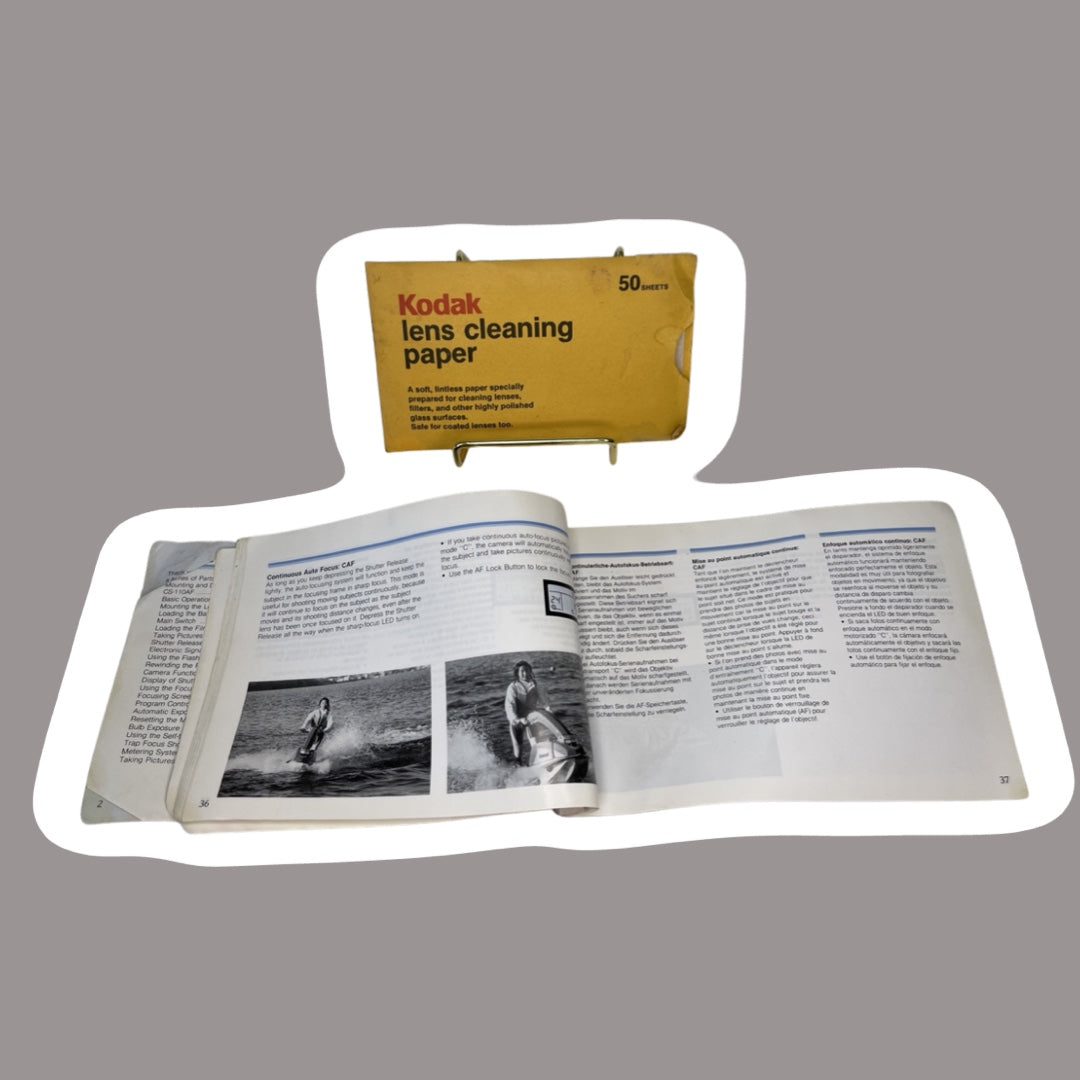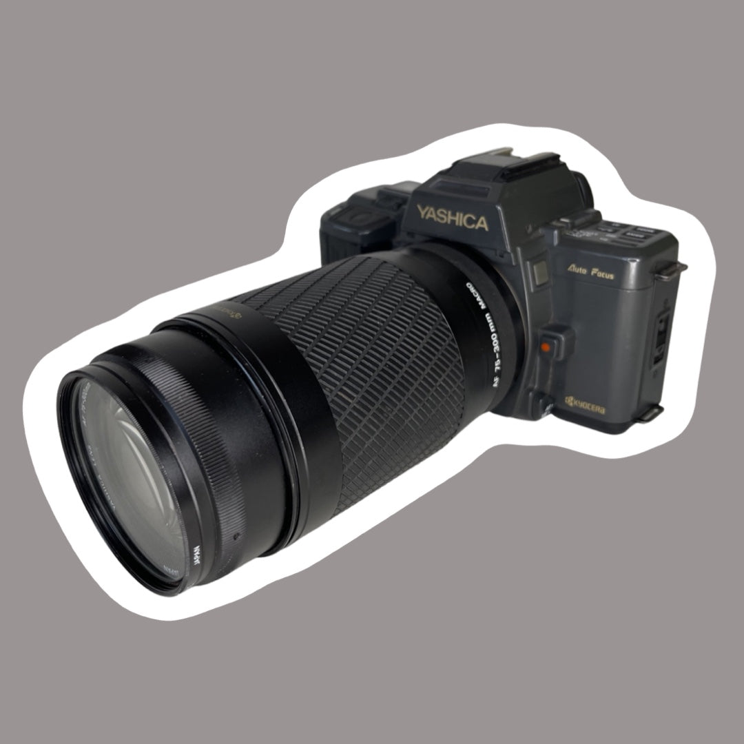 This is a cool example of early 1980s camera technology. This setup is from the time when the world was still almost entirely analog. This is a Kyocera Yashica 230 AutoFocus 35mm SLR with a 70-210mm F4.5 AF Yashica lens as well as original instruction pamphlet included. This is a multi-mode feature loaded 35mm film camera. It has new batteries and works as expected. Such a beautiful and fun piece of history!