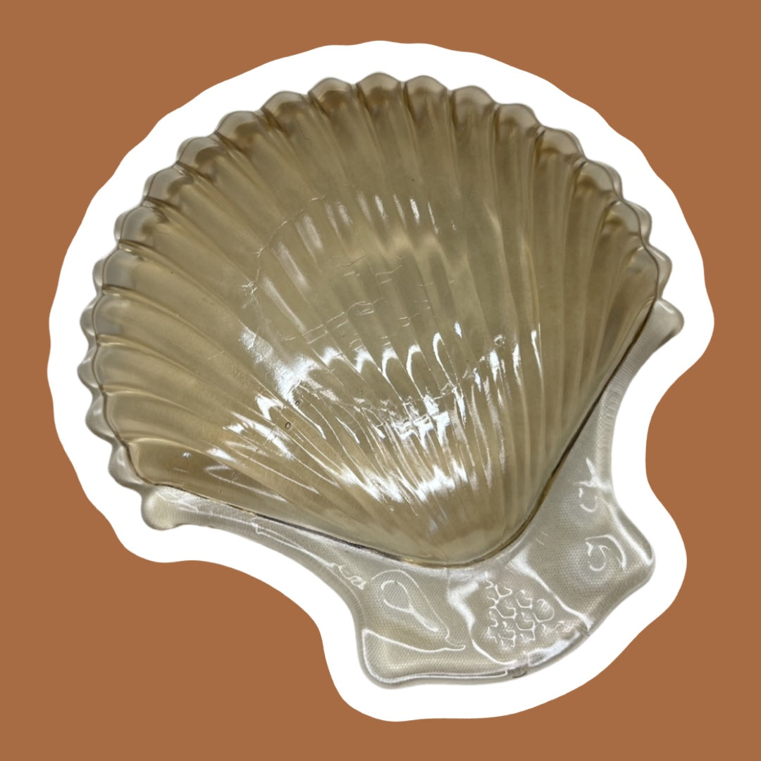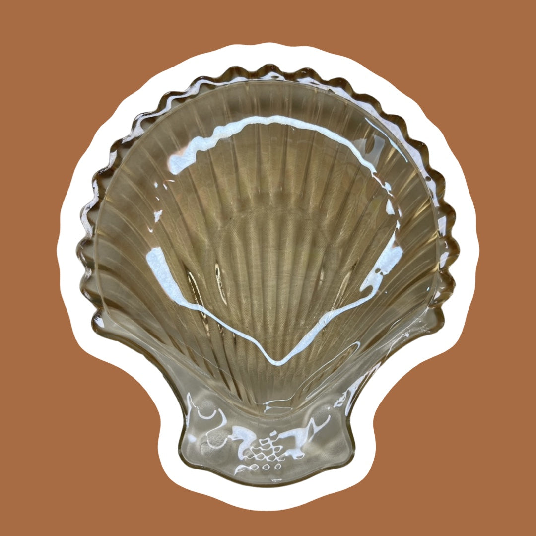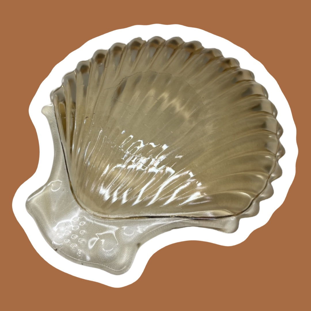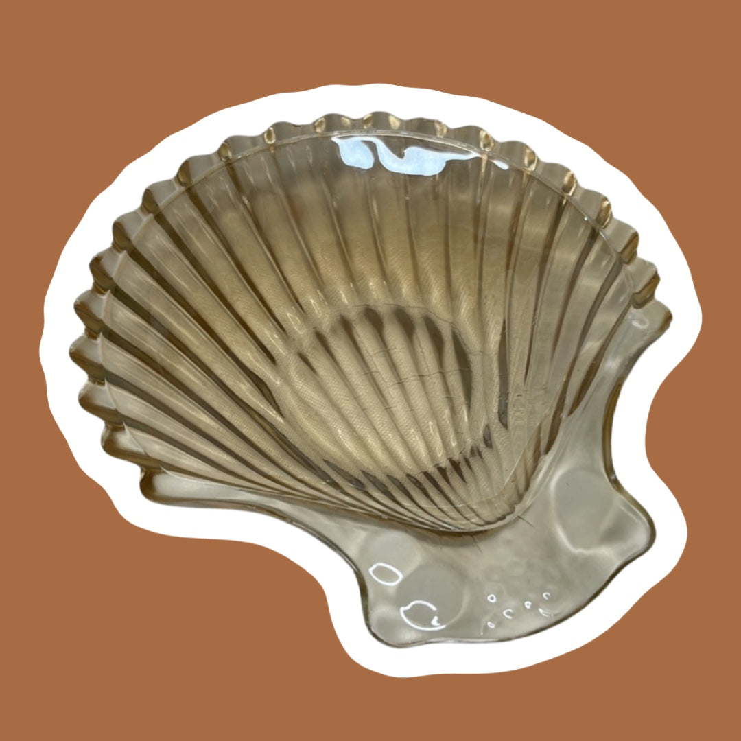 Peachy/orange glass seashell trinket dish with fruit shapes on the bottom area. Simple, cute decor for dreamy and eclectic vibes!