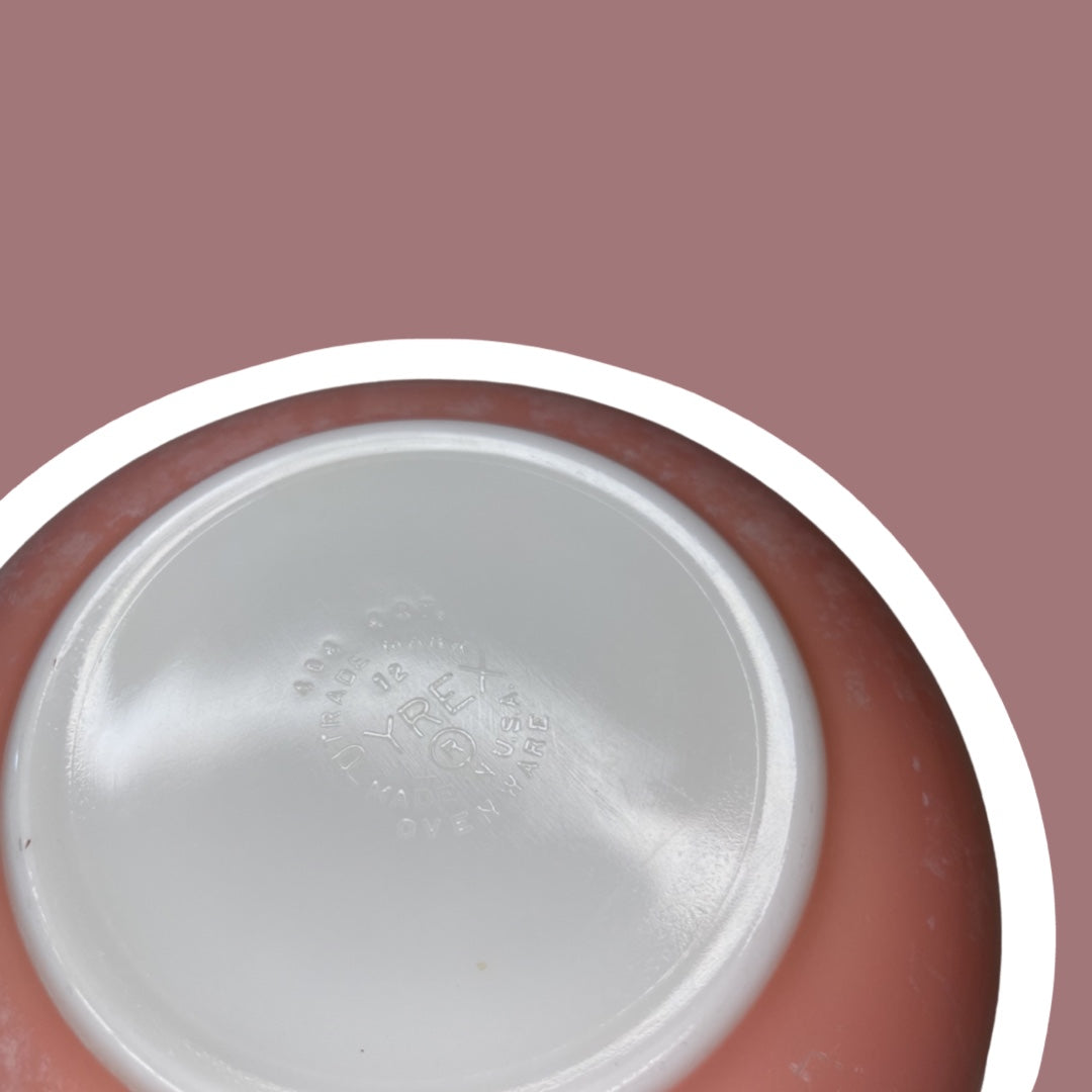 A lovely, flamingo pink Pyrex #404 mixing bowl from the 1950s!