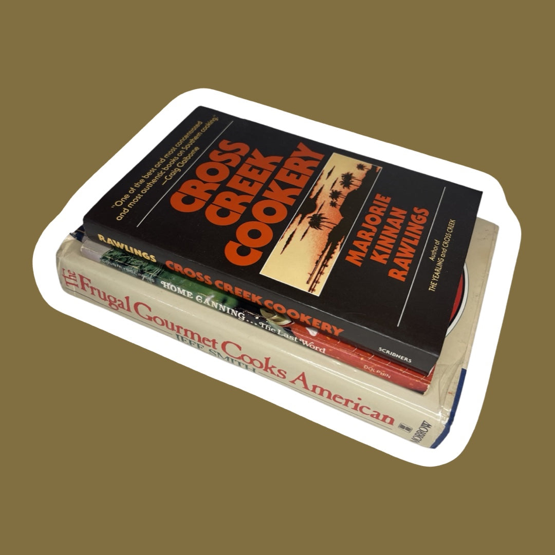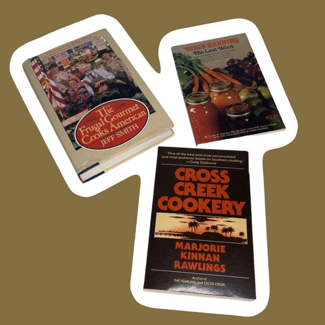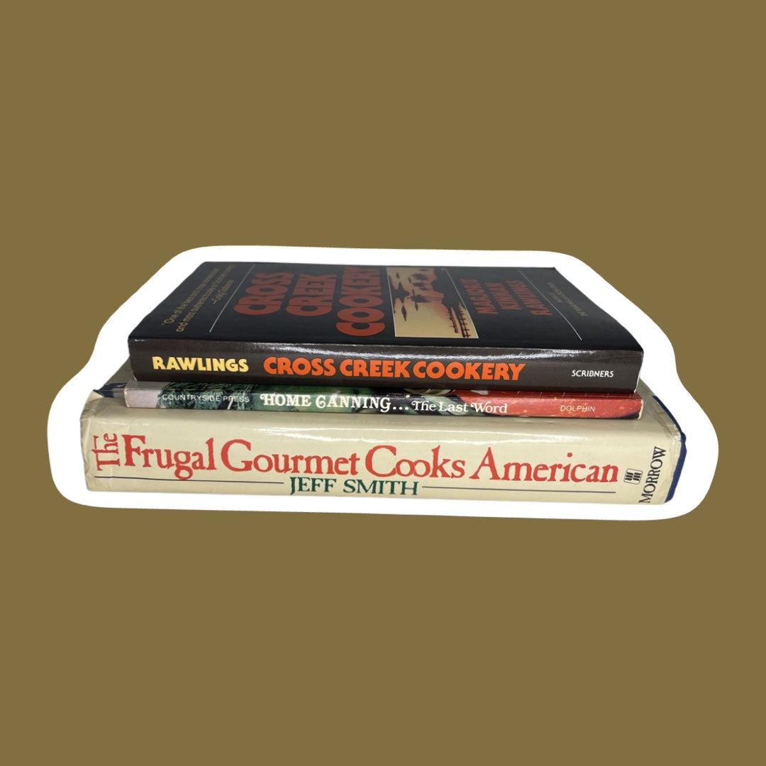 This set of three books includes ‘The Frugal Gourmet Cooks American’, ‘Home Canning…The Last Word’ and ‘Cross Creek Cookery’.