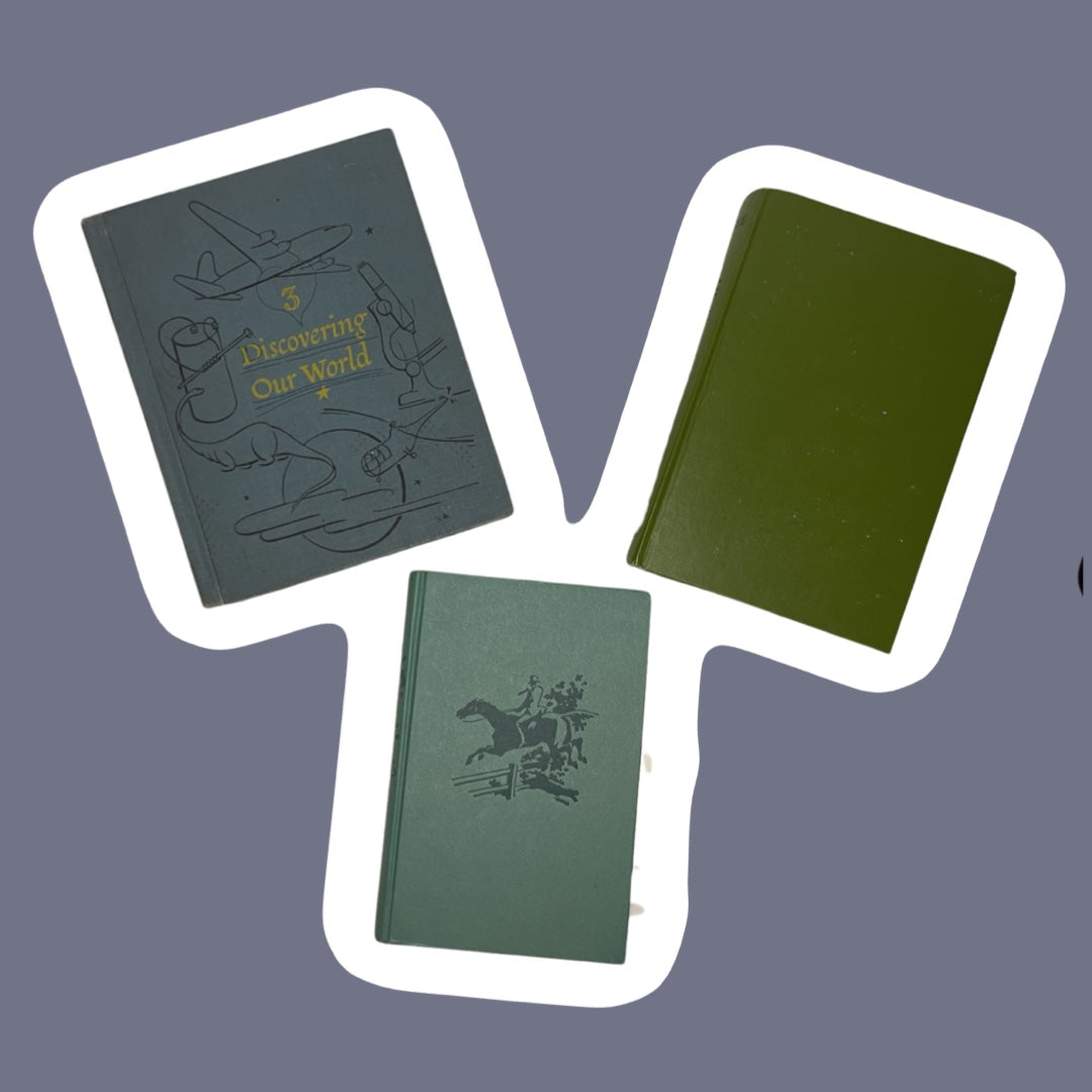 Vintage Hard Cover Teal/Green/Blue Decorative Book Bundle, Set of 3 Books